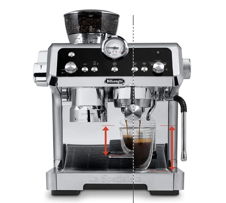 DeLonghi a conçu cette machine expresso La Specialista 2.0 Prestigio EC 9355.M pour permettre à tout le monde de devenir barista à la maison et de réaliser toutes sortes de boissons caféinées. En plus des technologies et des points déjà évoqués, voici d’autres caractéristiques à tenir en compte. Une buse dédiée à l’eau chaude (différente de la buse vapeur) pour le thé ou un Americano simplifié. Un plateau amovible pour vos tasses ou verres (jusqu’à 120 mm de haut).