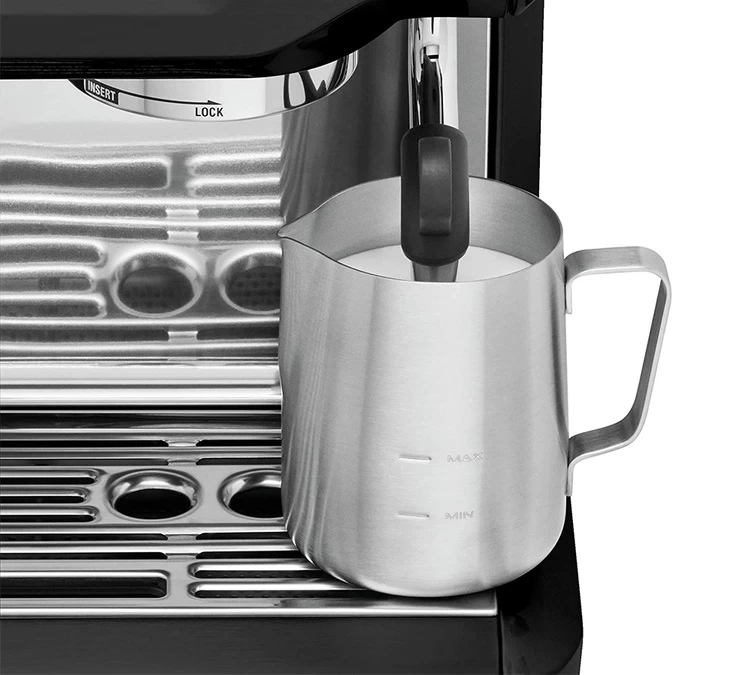 Comme beaucoup en sont fans, Sage a également équipé cette machine de son fameux système de mousse de lait automatique. Grâce au pichet à lait fourni, il ne vous est pas nécessaire de vous équiper. Le fonctionnement de la machine est simple, il suffit de régler la texture de mousse que vous souhaitez pour votre boisson (ou de laisser faire les programmes déjà enregistrés), puis de poser le pichet.