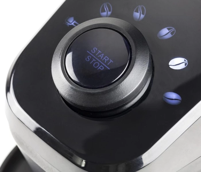 Les symboles avec l’éclairage LED en façade permettent de régler le temps de broyage selon le nombre de tasses souhaitées.